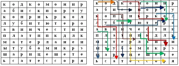 Ведущий: Найдите как можно больше слов, имеющих отношение к персональному компьютеру. Двигаться можно вниз, вправо и вверх. Каждое слово принесет команде 1 балл.