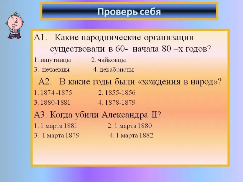 - Народничество, где познакомимся с деятельностью народников