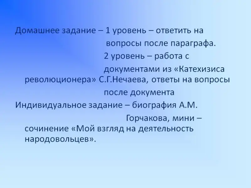 Индивидуальное задание - биография А.М. Горчакова, мини - сочинение «Мой взгляд на деятельность народовольцев».