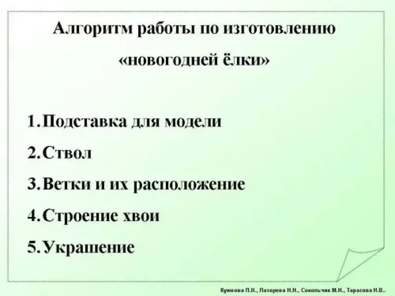 Деление на группы для составления алгоритма работы по изготовлению ёлки.