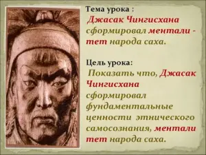 - Джасак Чингисхана сформировал менталитет народа саха.