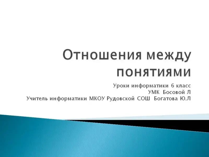 Урок информатики по теме "Отношения между понятиями". 6-й класс
