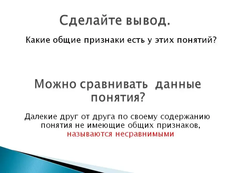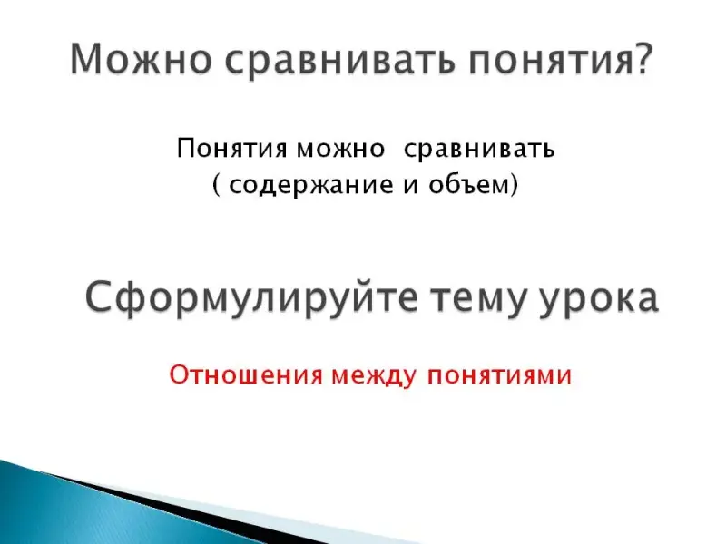 Цель урока: рассмотреть отношения между понятиями, сделать вывод можно ли сравнивать понятия.