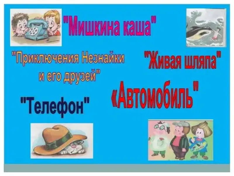 Слайд 1. "Мишкина каша", "Приключения Незнайки и его друзей", "Автомобиль"