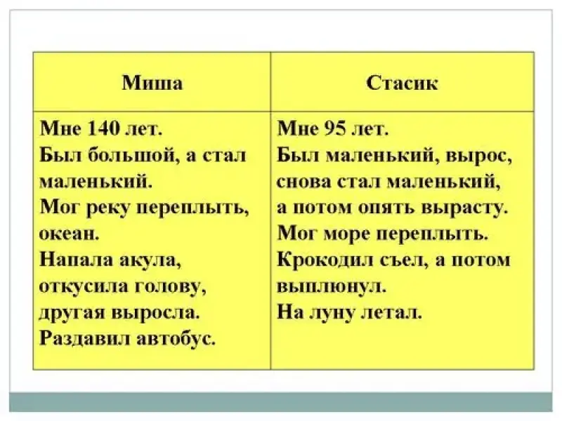 - Прочитайте, что придумывал Миша, а что Стасик.