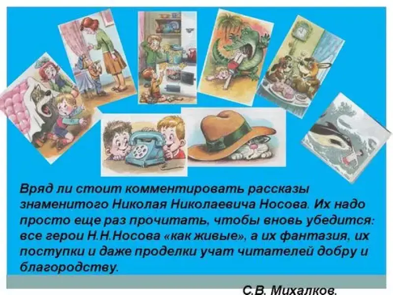 "Все герои Николая Носова "как живые", а их фантазия, их поступки и даже проделки учат читателей добру".