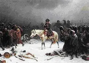 1) Napoleon's withdrawal from Russia, a painting by Adolph Northen.