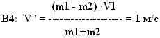 В4. Брусок массой m1=600 г, движущийся со скоростью 2 м/с, сталкивается с неподвижным бруском массой m2=200 г. Какой станет скорость первого бруска после столкновения? Удар считать центральным и абсолютно упругим.