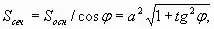 Угол наклона сечения к плоскости основания находим так же, как и в первом способе.