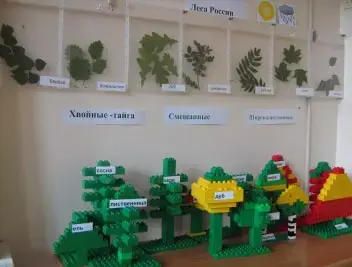 Оборудование: настенная карта природных зон России, презентация "Леса России". Цветные ящики из Лего-конструктора и вопросы в них с отгадками (1 - кора березы, 2 - ветка ели, 3 - дубовый лист) ; карточки-задания "Хвойные и лиственные леса", гербарии, Лего деревья:хвойные 5 шт. и лиственные - 5 штук; карточки к ним: ель, сосна, ель, дуб, лиственница, сосна, кедр, береза, клен, липа, вяз, ясень, бук; Лего герои:клест, медведь, заяц-беляк, лиса. У детей учебник Плешакова "Окружающий мир" 4 класс, 2 часть (стр. 100,107, 102,), 2 карандаша :красный и зеленый, таблица для теста, костюмы к сценке, доклады про леса России.