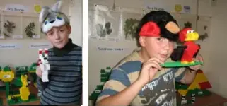 1) Сценка. (Леголес, лего-животные: медведь, заяц, лиса, клёст)