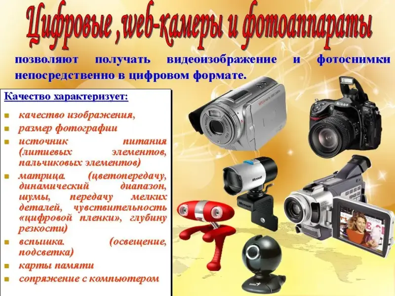 Цифровые ,web-камеры и фотоаппараты (Слайд 8.)