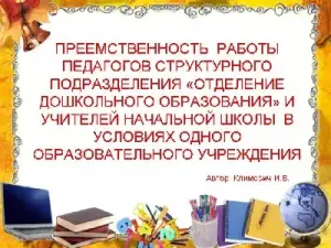 Преемственность работы педагогов структурного подразделения "Отделения дошкольного образования" и учителей начальной школы в условиях одного учреждения