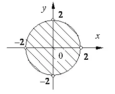 т.е. . Это множество точек, лежащих внутри круга с центром в начале координат, радиус которого равен 2.