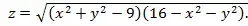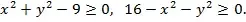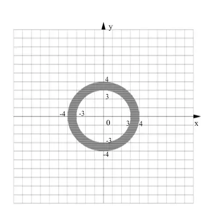 Решение. Эта функция определена, когда подкоренное выражение неотрицательно, т.е. Данным соотношениям удовлетворяют координаты всех точек, находящихся внутри кольца, образованного двумя окружностями с центрами в начале координат и радиусами R=3, R=4.