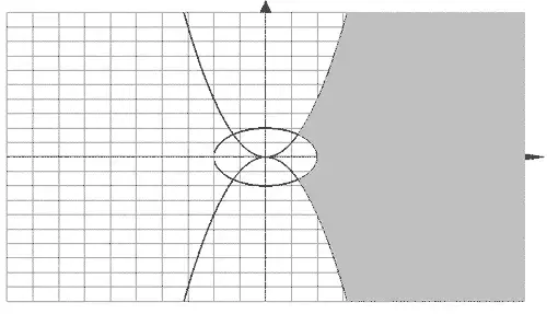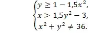 Решая данное неравенство, получим Это область, заключенная между двумя параболами и .