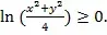 Решение. Область определения функции есть пересечение областей определения слагаемых функции. Для первой функции подкоренное выражение должно быть неотрицательным, т.е. Если значение логарифмической функции неотрицательно, то выражение, стоящее под знаком логарифма, должно быть больше или равно единице, т.е. отсюда . Это неравенство задает нам множество точек плоскости, лежащих вне окружности с центром в начале координат, радиуса 2, включая и точки данной окружности. Вторая функция определена при Следовательно, Имеем две параболы с вершиной в начале координат . Поэтому полученное неравенство задает нам часть плоскости, заключенную между этими параболами, включая границы без начала координат. Третья функция определена при