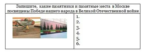 Задание 2. Запишите, какие памятники и памятные места в Москве посвящены Победе нашего народа в Великой Отечественной войне 1941 1945 г.г.