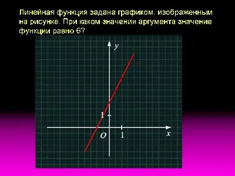 7. Линейная функция задана графиком, изображенным на рисунке. При каком значении аргумента значение функции равно 6?