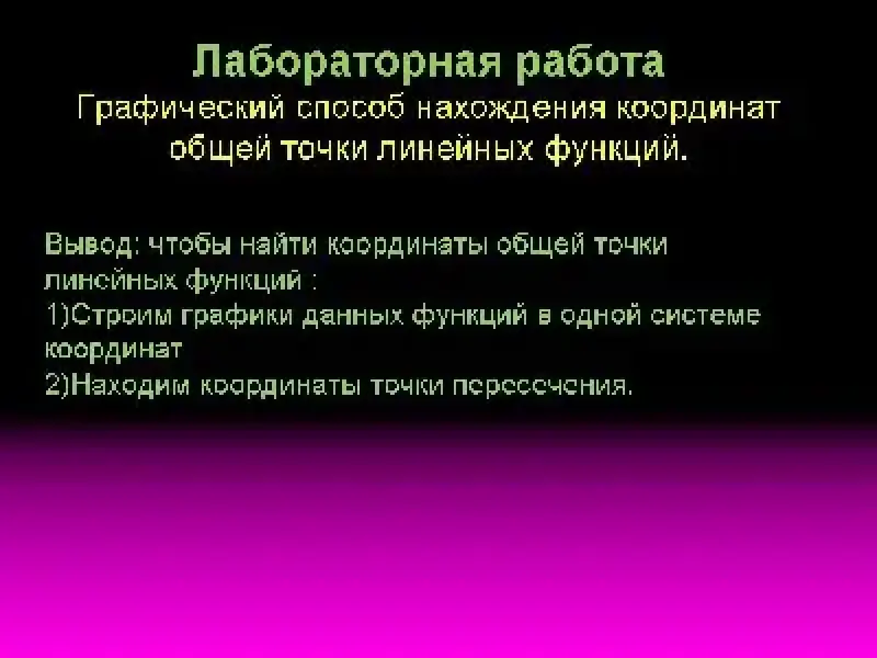 - Сделайте вывод: как найти координаты общей точки линейных функций. (слайд 13)