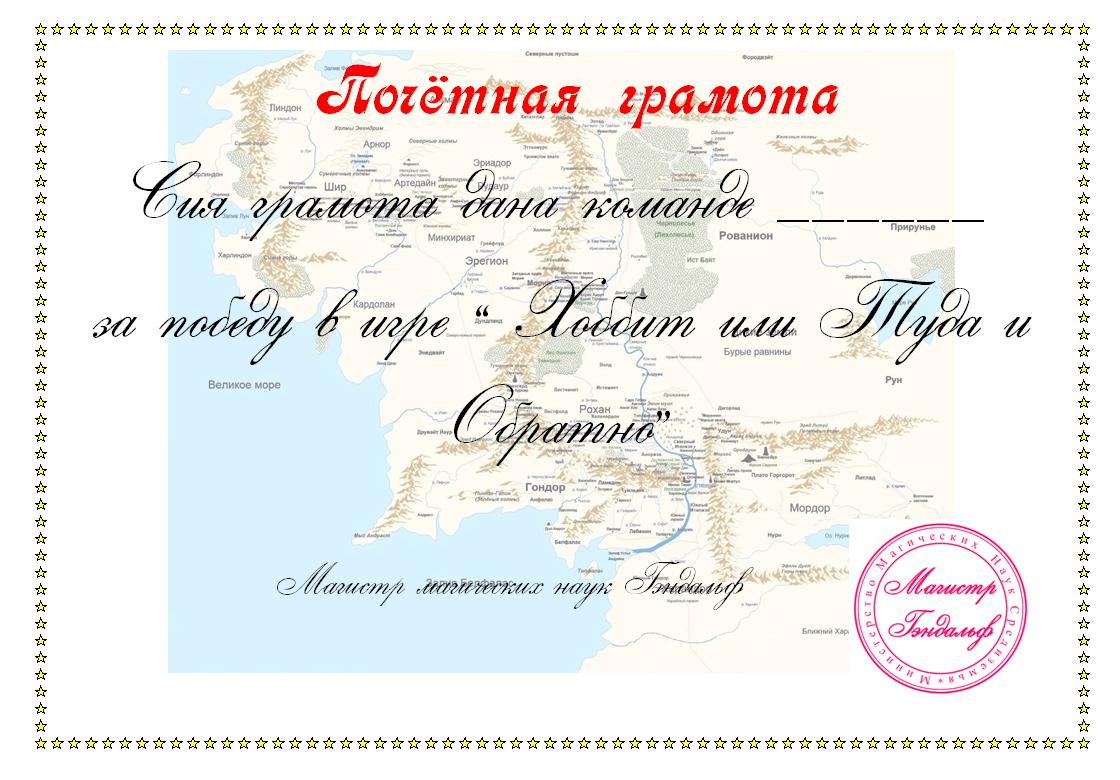 Победившая команда награждается Почётной Гэндальфовской Грамотой. <Приложение 4>