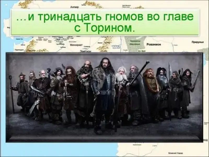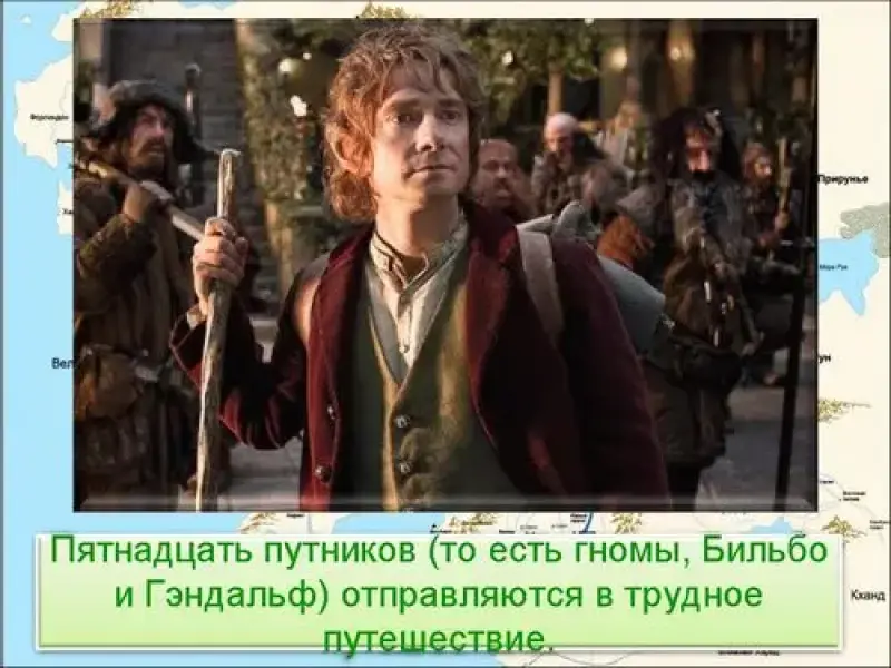 Однажды в дом к хоббиту Бильбо Бэггинсу постучали волшебник Гэндальф и тринадцать гномов во главе с Торином. Они уговорили хоббита отправиться в поход за знаниями гномов, похищенными драконом Смоггом. Гэндальф передаёт Торину загадочную карту и ключ.