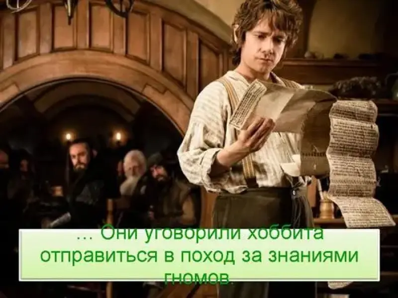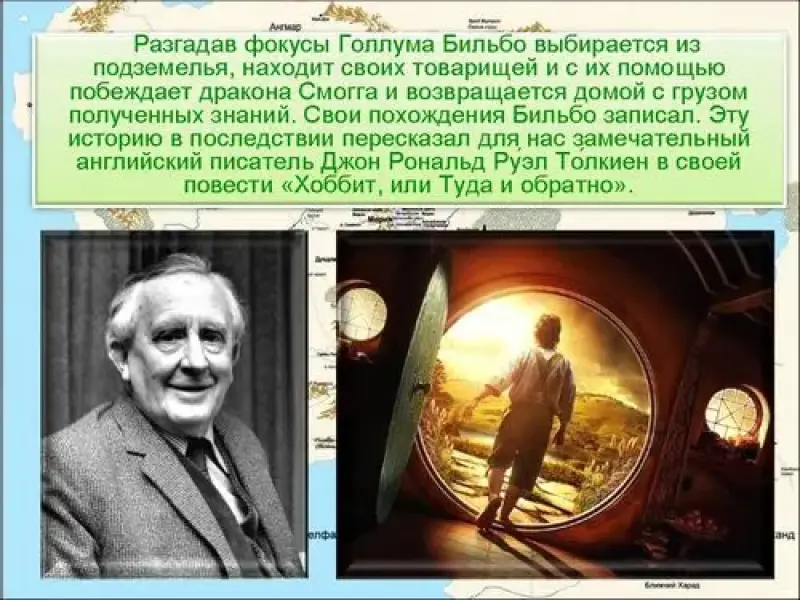 Разгадав фокусы Голлума Бильбо выбирается из подземелья, находит своих товарищей и с их помощью побеждает дракона Смогга и возвращается домой с грузом полученных знаний. Свои похождения Бильбо записал. Эту историю в последствии пересказал для нас замечательный английский писатель Джон Рональд Румэл Томлкиен в своей повести "Хоббит, или Туда и обратно".