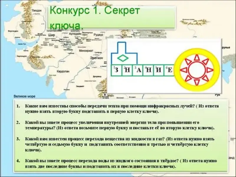 Каждая команда получает рисунок ключа и следующие вопросы <Приложение 1>: