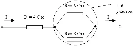 Ответ: общее сопротивление резисторов на участке электрической цепи 6 Ом.