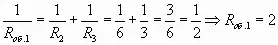 Rоб.1 = R1 + R2 = 1 Ом + 2 Ом = 3 Ом