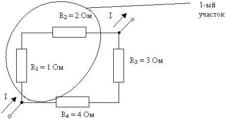 2. Рассчитайте общее электрическое сопротивление участка цепи?