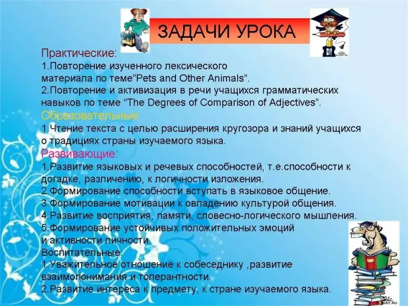 - Развитие интереса к предмету, к стране изучаемого языка.