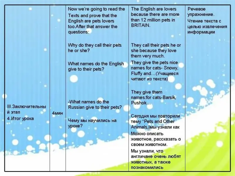 Можно описать животное, рассказать о своем животном. Мы узнали, что англичане очень любят животных, а также познакомились |