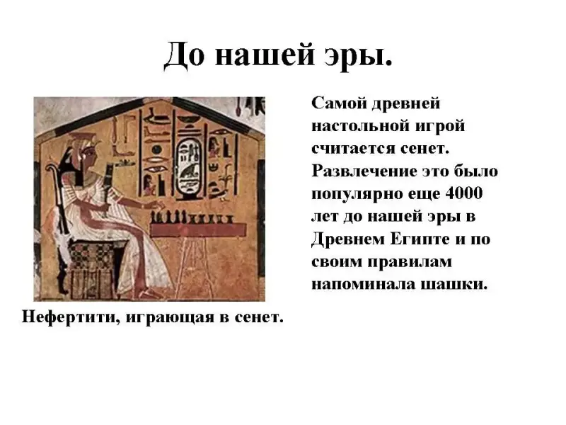 Самой древней настольной игрой считается сенет. Развлечение это было популярно еще 4000 лет до нашей эры в Древнем Египте и по своим правилам напоминала шашки.