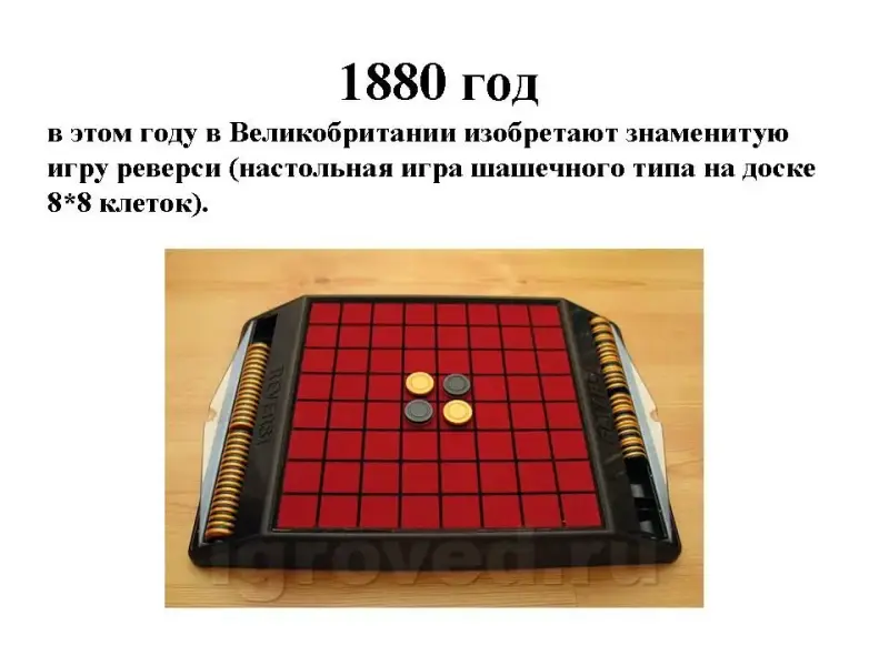 1880 год в этом году в Великобритании изобретают знаменитую игру реверси (настольная игра шашечного типа на доске 8*8 клеток).