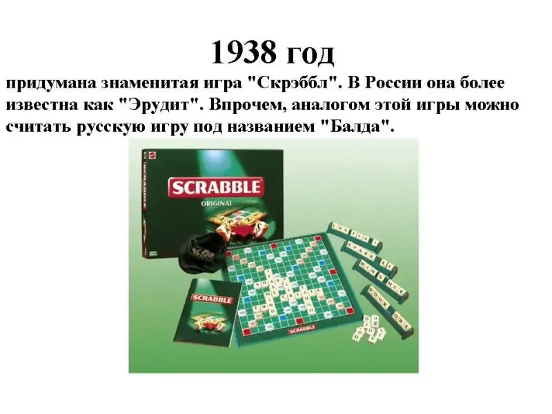 Придумана знаменитая игра "Скрэббл". В России она более известна как "Эрудит". Впрочем, аналогом этой игры можно считать русскую игру под названием "Балда".