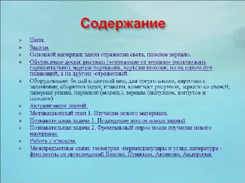 Программно-дидактическое обеспечение: учебник, тетрадь, компьютер, проектор, экран, слайд-презентация, карточки с заданиями, комплект рисунков, зеркало со свечой, лазерная указка, модель перископа, набор зеркал.