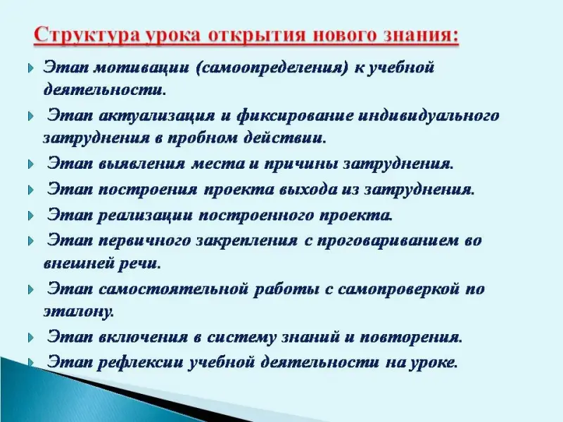 - рефлексия (осознание учеником и воспроизведение в речи того, что нового он узнал и чему научился на уроке).