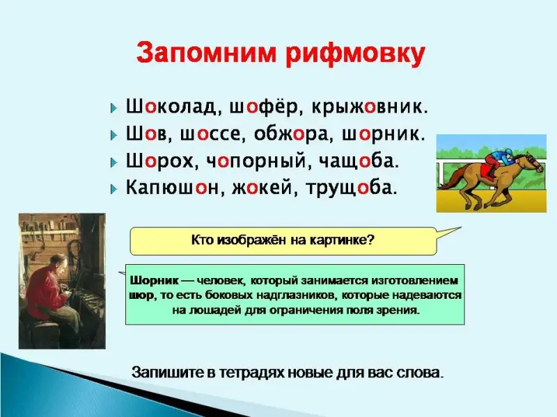 - Назовите ключевые слова (сочетания слов) урока. (Шипящий, корень, буквы Ё, О, звук под ударением, непроверяемая буква безударного
