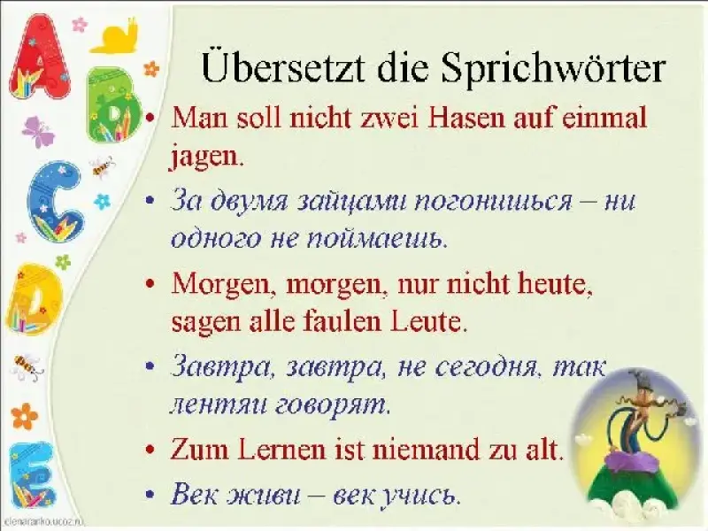- Игра 11-я: Подобрать к немецким пословицам соответствующие русские пословицы (слайды 27-29)
