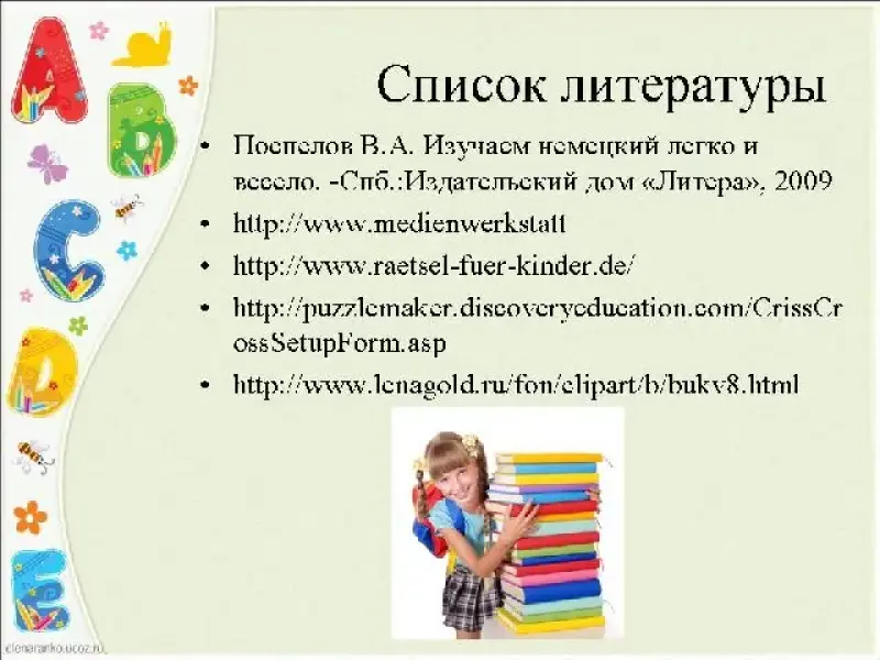 - Поспелов В.А. Изучаем немецкий легко и весело. -Спб.:Издательский дом "Литера", 2009