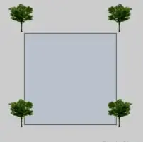 4. Имеется квадратный пруд, по берегам которого растет четыре дерева. Со временем пруд понадобилось расширить, увеличив его в два раза, и, сохранив при этом его квадратную форму. Каким образом можно расширить пруд, чтобы деревья остались невредимыми, и, как и прежде оставались расти по берегам пруда?