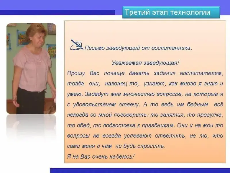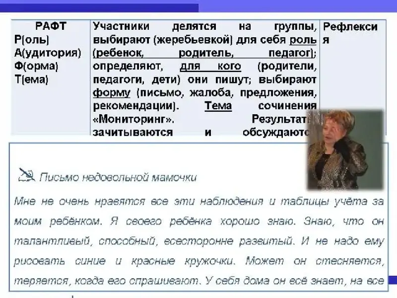 педагоги, дети) они пишут; выбирают форму (письмо, жалоба, предложения, рекомендации).