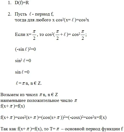 Задача 2. Показать, что функция f(x)=cos2(x) периодическая и найти её основной период.