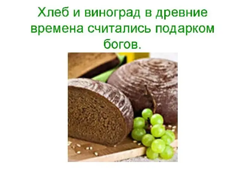 Хлеб и виноград были результатом кропотливой работы земледельца. В древние времена они считались большим подарком для людей от богов. (Презентация: слайд 4).