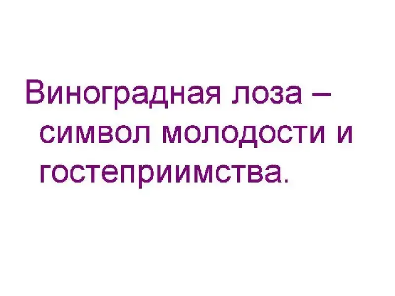 Виноградная лоза символизирует также упоение, кипящую молодость, гостеприимство. (Презентация: слайд 5)