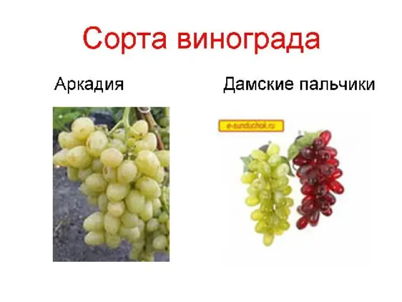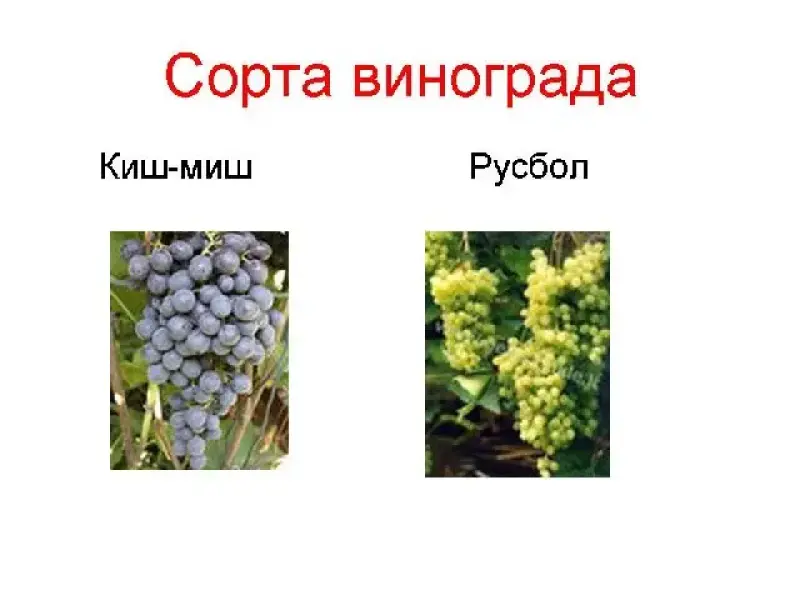 Сортов винограда много: "Изабелла", "Кишмиш", "Дамские пальчики". (Презентация: слайды 11, 12).