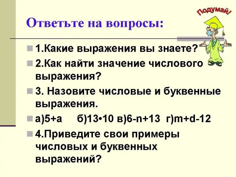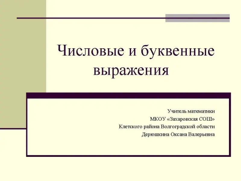 Открытый урок математики по теме "Числовые и буквенные выражения". 5-й класс