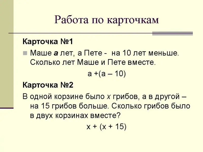 Задача. Маше а лет, а Пете - на 10 лет меньше. Сколько лет Маше и Пете вместе.