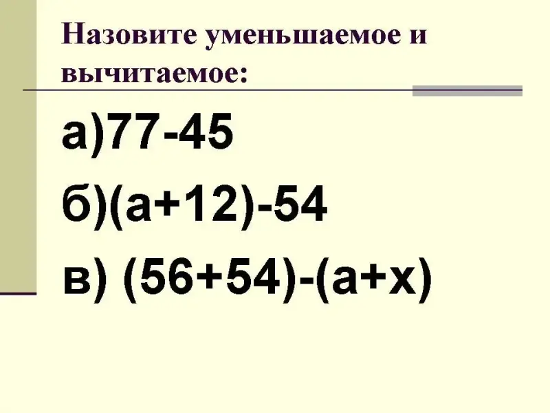 10) Назвать уменьшаемое и вычитаемое: (слайд 11)